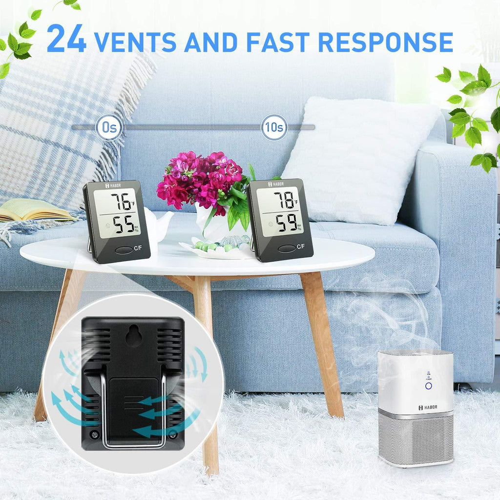 • 【Comfort Level Indicator Level icons indicate comfortable, uncomfortable and normal conditions. Harbor hygrometer thermometer measures indoor humidity and indoor temperature in time help to adjust the humidifier, dehumidifier settings and humidistat, great for monitoring family's living conditions and health by preventing colds, dry skin, asthma, allergy, mold.