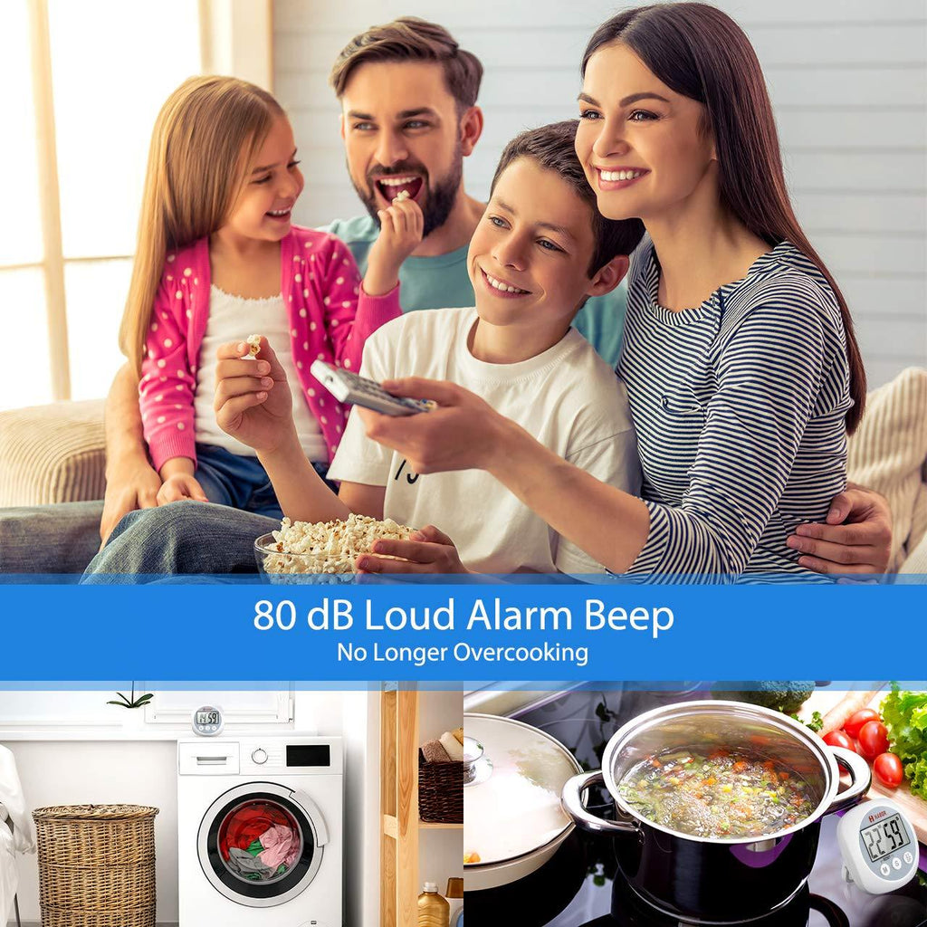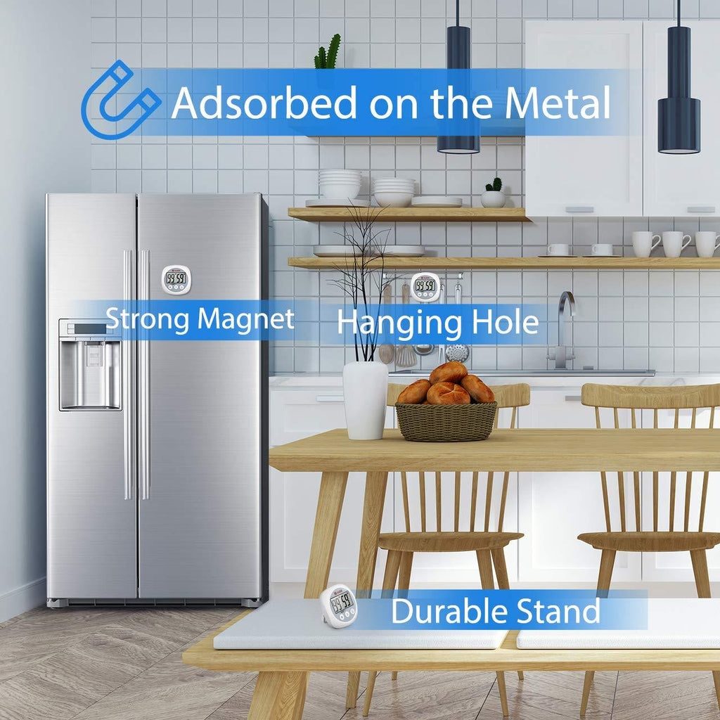 • 【Stronger Magnetic Adsorption - Sustain 10N Tension】We upgraded the kitchen timer magnetic, the new version magnetic backing can sustain 10N tension and stay firmly on any metal surface. It is also with Kick-out stand on the table and Hook for hanging.