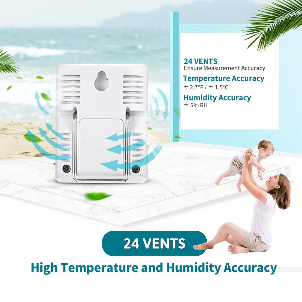 【High Reliability & Accuracy】Fast response that measures every 10 seconds with 24 sensitive VENTS to provide updated and accurate readings, wide measuring range that measures temperature from 32℉ to 122℉(0℃~50℃), temperature accuracy range around 2. 7℉ ( 1. 5℃). Humidity sensor measures humidity from 20% to 95%, humidity accuracy range around 5%.