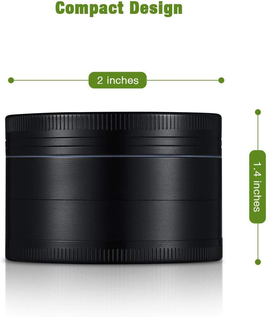 - 【Kompakt und tragbar】Dieser Kräuter Schleifer (2 Zoll Durchmesser x 1,4 Zoll Höhe) ist kompakt und leicht für einfache Lagerung und Transport.