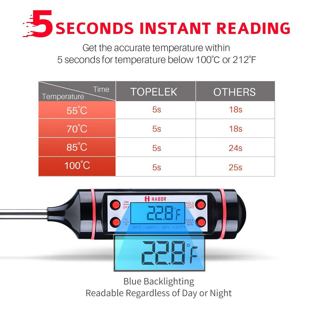 • 5. 9 inches Long Probe: Habor meat thermometer is highly sensitive to provide a fast and accurate reading within 5 seconds! 5. 9 inches long probe keeps you from burning your hands while measuring water or something else.