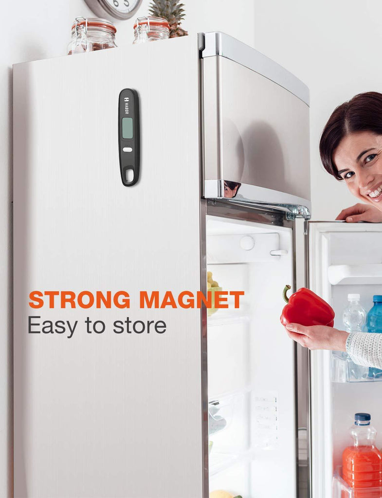• 【EASY TO USE & STORE】Simply pull out the foldable probe, insert into your food or liquid and get the really-time temperature. Thermometer probe folds away easily, magnetic back and hanging hole makes this food thermometer much easier to carry or store