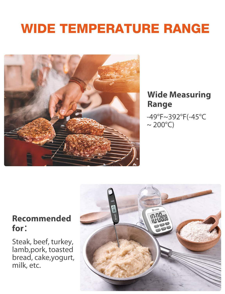 • 【4.8" LONG PROBE】Made of food-grade 304 stainless steel and sturdy ABS, 4.8" long probe keeps you from burning your hands while measuring! Best for indoor and outdoor cooking, easily measuring the temperature of steak, beef, chicken, turkey, water, milk, liquid, etc
