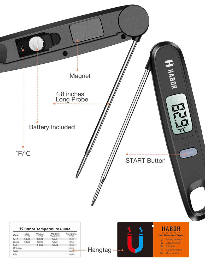 • 【❤❤LIFETIME WARRANTY❤❤】What you get: 1×Habor Meat Thermometer; 1×User Manual; 1×Meat Temperature Guide,we provides ❤❤Lifetime Warranty❤❤ on this Food Thermometer to target 100% customer satisfaction.