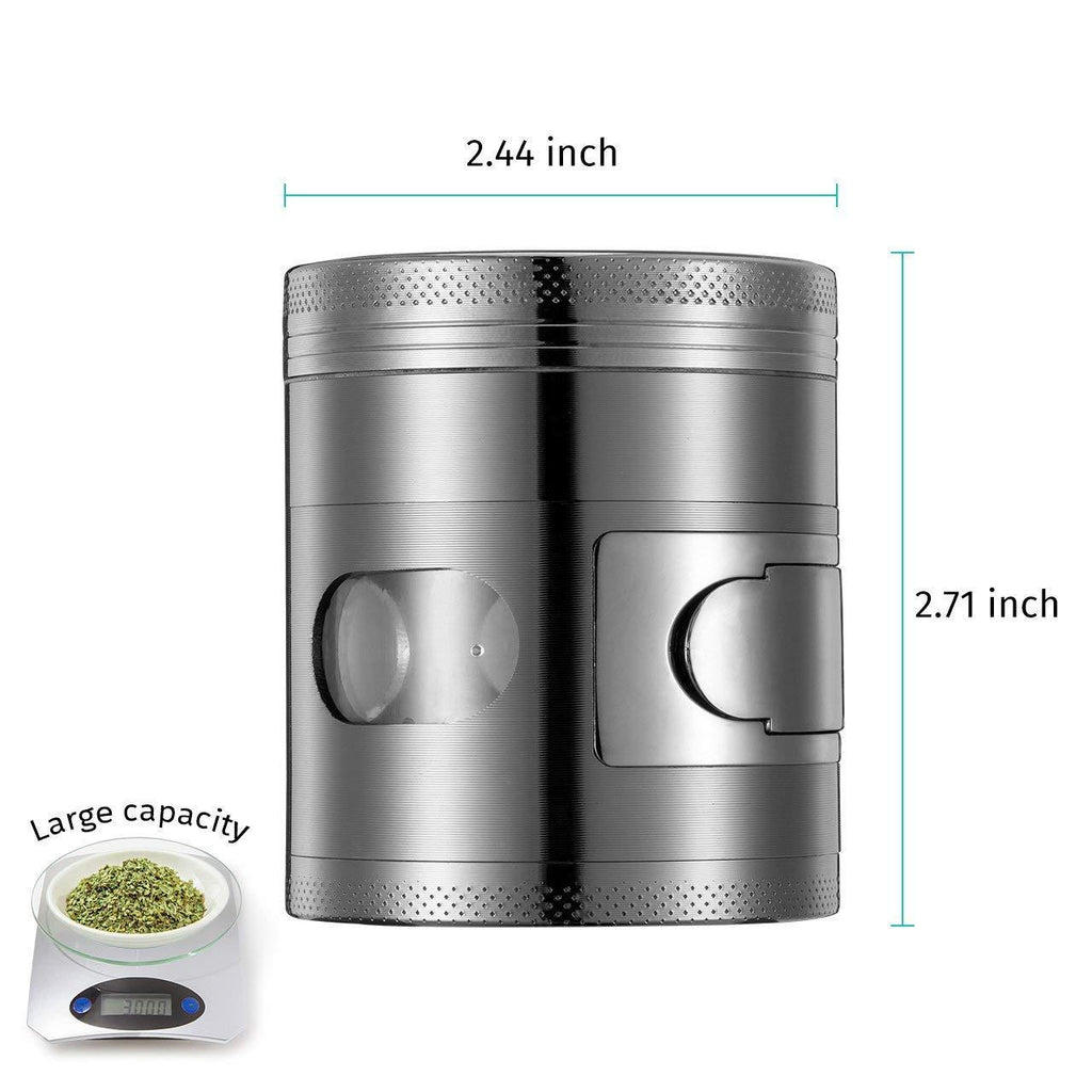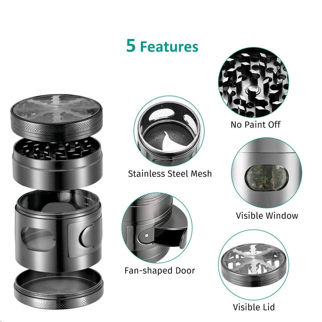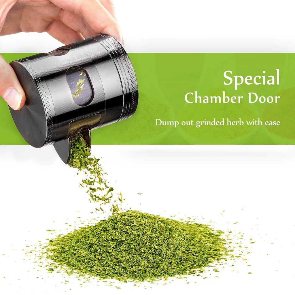 Details: Your favorite grinder should be zinc alloy grinder with visible window and chamber door. Using at kitchen and taking it outdoors are ok!