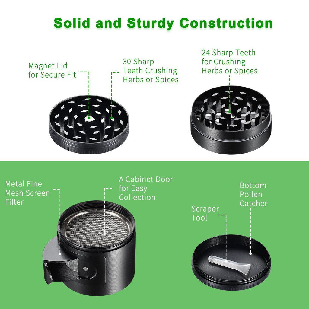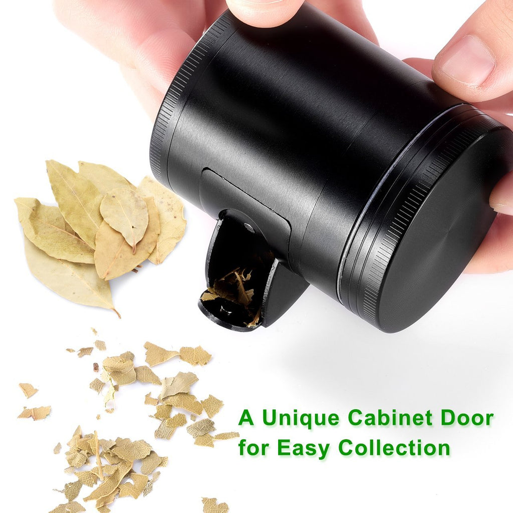 featuring user-friendly side door, large Capacity, sturdy and durable construction, easy operation and portable size, this 4-layer chamber designed herb grinder helps grind herbs, tea Leaves and spices efficiently. There is no doubt that our grinder is a perfect choice for your cooking.