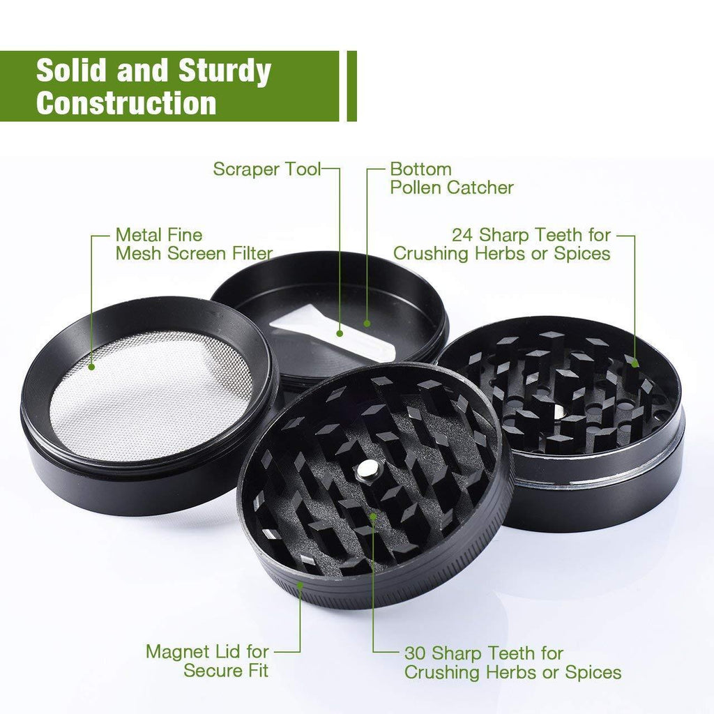 This herb grinder is made of high quality material which guarantees optimal performance and durability. No need to worry about the paint and metal would peel off the surface and have bad effects on health.