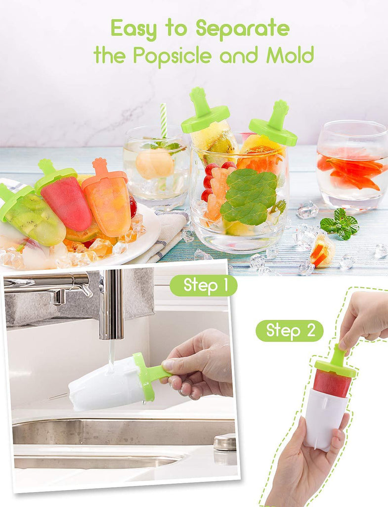 • 【Lifetime Warranty & Tip for Releasing the Pop】After taking out the frozen ice pop from the fridge, please leave it for 2-3 minutes. It is recommended to rinse the bottom of the molds with cold or warm water before taking the popsicles out. If you have any problem with IKICH Ice Pop Mold, please feel free to Contact our nice customer service, We will offer a professional and Satisfactory solution for you.