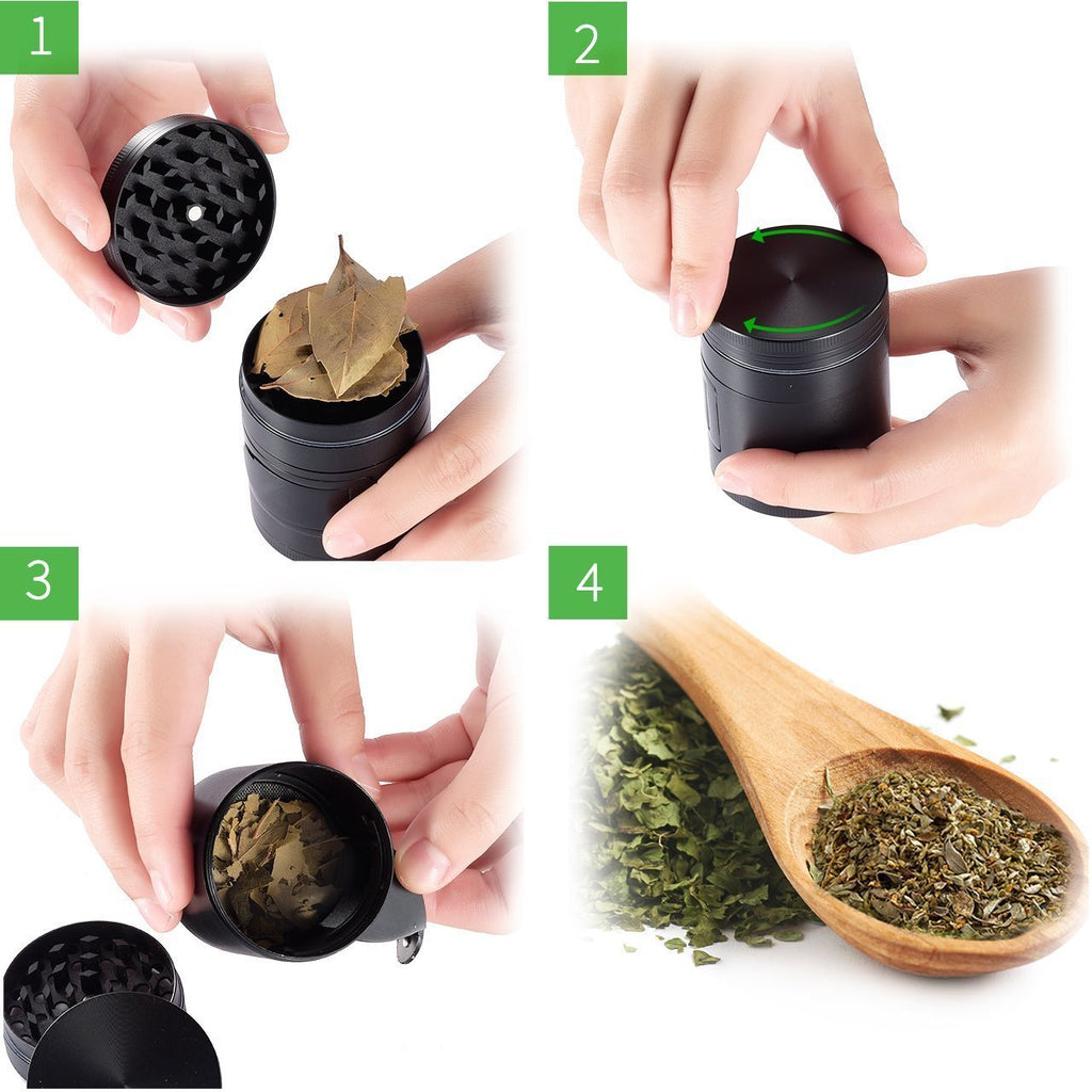 • [Efficient Grinding and Filtering] There are up to 30 sharp teeth on the top layer and 24 sharp teeth on the second layer for crushing dry herbs smoothly and efficiently. The metal fine mesh screen filter separates the chunky herbs from the finer particles.