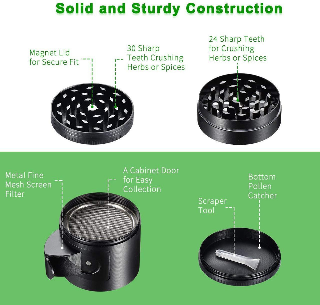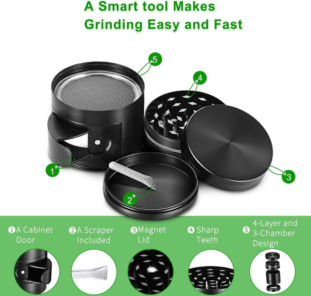 【Durable - Zinc Alloy Material】 Crafted with premium zinc alloy, designed with 4 layers and 3 chambers to ensure optimal grinding performance and exceptional durability